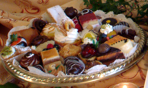 Sweet Table Special - Assortment of French & Italian Mini Pastries ; Chocolate Covered Strawberry ; Assorted European Cookies ; Assorted Cookie Tray ; Fruit & Cheese Kolachky ; Tortes Coffee- Tea- Decaf ; Fruit Punch Linen &